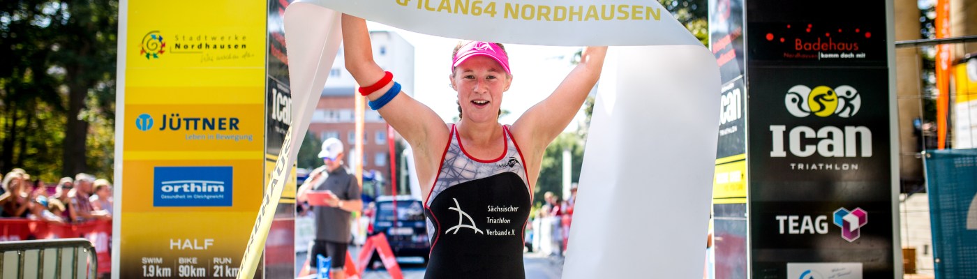 Fünf Minuten vor mir meinem startete Sven und mit ihm alle Mitteldistanzler. Das hieß ich würde mit als erste auf die Radstrecke gehen. Nach einem ungewohnten ruhigen Schwimmen, verließ ich als 2. das Wasser, vor mir nur eine Staffeln. Getrieben von dem Ehrgeiz das mich Sven ja nicht so früh einholte trat ich kräftig rein. Nach ca. 30 km hatte er mich dann, er lag gut im Rennen. Die anschließenden 10 km entpuppten sich sich ebenfalls als sehr hüglig und anspruchsvoll. Entweder es ging hoch oder runter, das einzig flache Stück war die Zielgerade. 🙂 Umso glücklicher war ich über meine Laufperformance. Mit knapp 18 min Vorsprung und einem neuen Streckenrekord erreichte ich als 1. Frau und 3. insgesamt das Ziel.